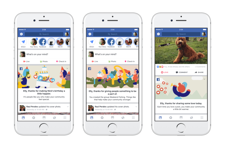 After someone reacts to a friend’s post with Love, wishes someone happy birthday or creates a group, they will see a message in News Feed thanking them.