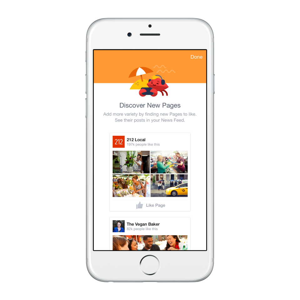 Ajudar você a encontrar novas Páginas para seguir, facilita que você se conecte a jornalistas, artistas ou empresas que você pode estar interessado. Com base no tipo de Página que você já segue, você pode descobrir novas Páginas de forma a te apresentar mais histórias que podem ser interessantes para você.