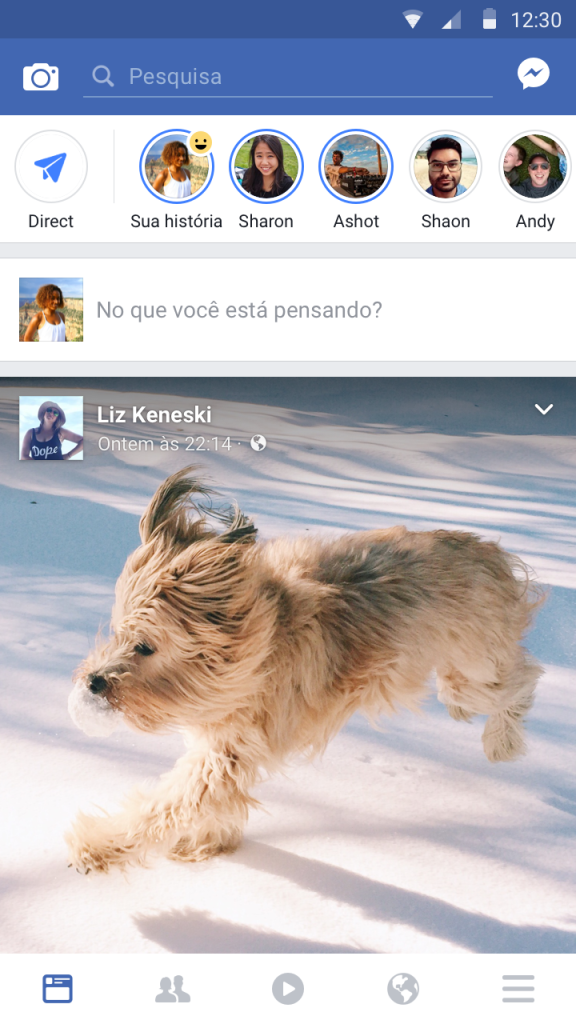 A comunidade do Instagram nos mostrou que pode ser divertido compartilhar coisas que desaparecem depois de um dia. Por isso, no principal app do Facebook, também estamos lançando o Facebook Stories, que permite compartilhar várias fotos e vídeos como parte de uma coleção visual no topo do Feed de Notícias. Seus amigos podem ver as fotos ou os vídeos da sua história por 24 horas e esse conteúdo não aparecerá na sua linha do tempo ou no Feed de Notícias, a menos que você poste ele lá também.