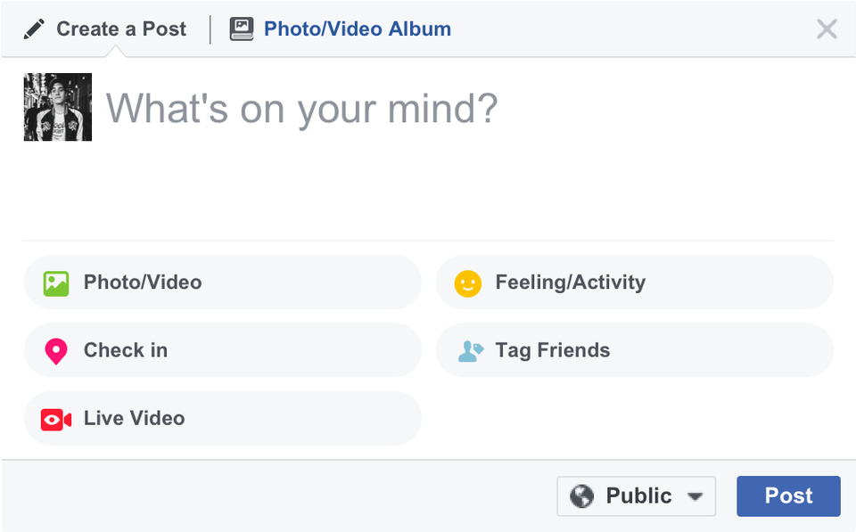 Para começar a transmitir ao vivo a partir de um computador, clique em “Criar uma publicação” na parte superior do Feed de Notícias e em seguida selecione “Vídeo ao vivo”. Depois, basta seguir as instruções para adicionar uma descrição e escolher o seu público-alvo.
