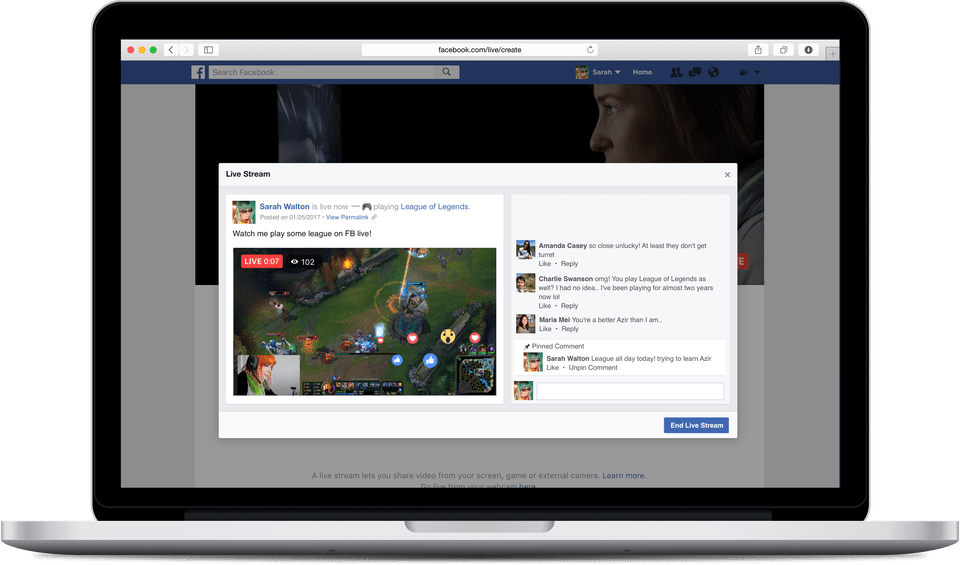 As pessoas ao redor do mundo podem agora transmitir vídeos ao vivo pelo Facebook a partir de seus computadores desktop ou notebooks. Embora já fosse possível transmitir ao vivo por dispositivos móveis no Facebook, computadores desktop ou notebooks fornecem uma configuração de câmera estável que pode ser benéfica para muitos tipos de transmissões pelo Facebook Live – desde entrevistas, vlogs e tutoriais a qualquer transmissão que não exija que a pessoa se locomova.