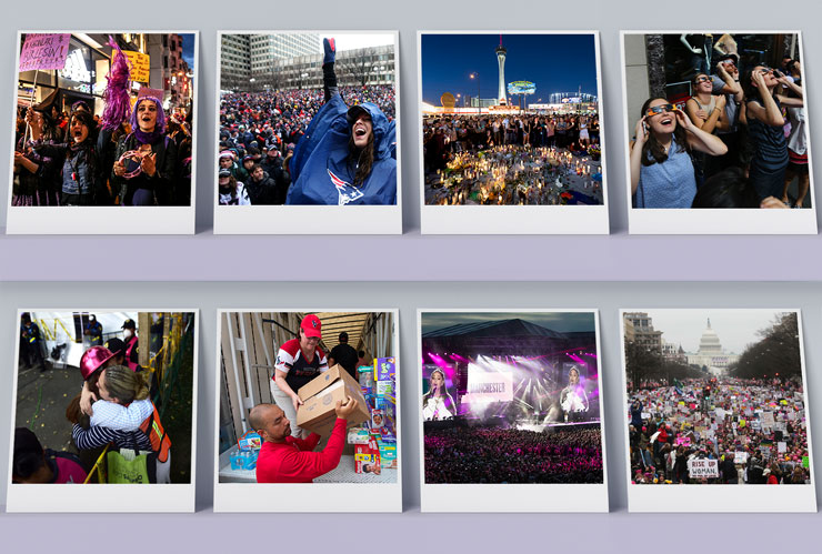 - Marcha das Mulheres em Washington: Em 21 de janeiro, A Marcha das Mulheres em Washington reuniu mais de 500 mil pessoas, online e offline, no maior evento no Facebook para uma única causa em 2017.