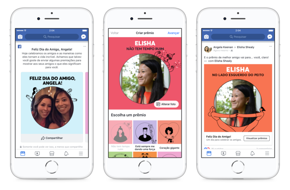 Além do vídeo, você pode criar e compartilhar seu próprio Prêmio dos Amigos – pré-criados ou feitos por você a partir de modelos disponíveis – como “Melhor Amigo”, “Melhor Ouvinte”, e “Sabe Me Fazer Rir”.