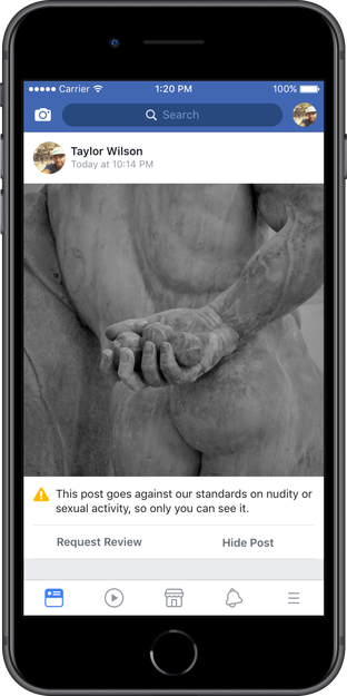 Mesmo com nossas auditorias de qualidade, sabemos que nem sempre acertamos. É por isso que já oferecíamos às pessoas a possibilidade de apelar sobre as nossas decisões quando removemos um Perfil, Página ou Grupo. E, a partir de hoje, estamos expandindo nosso recurso de apelação de conteúdos removidos por nudez ou atividade sexual, discurso de ódio e violência, para que as pessoas nos digam quando acreditarem que possamos ter cometido um erro.