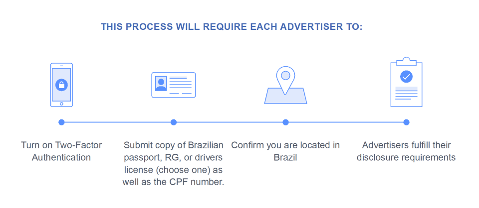 - Registro para veicular Anúncios relacionados a política, incluindo propaganda eleitoral – a partir de 31 de julho, os anunciantes no Brasil poderão se registrar no Facebook para marcar seus anúncios como eleitorais. Eles precisarão passar por autorizações para realizar essa ação;