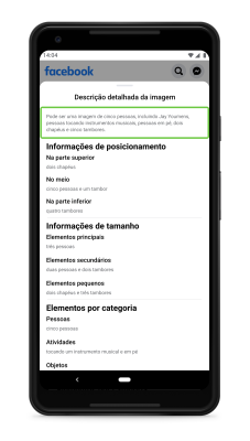 Juntos, esses avanços ajudam os usuários com deficiência visual a entender melhor o que há nas fotos publicadas por familiares e amigos — e em suas próprias fotos — fornecendo mais (e mais detalhadas) informações.