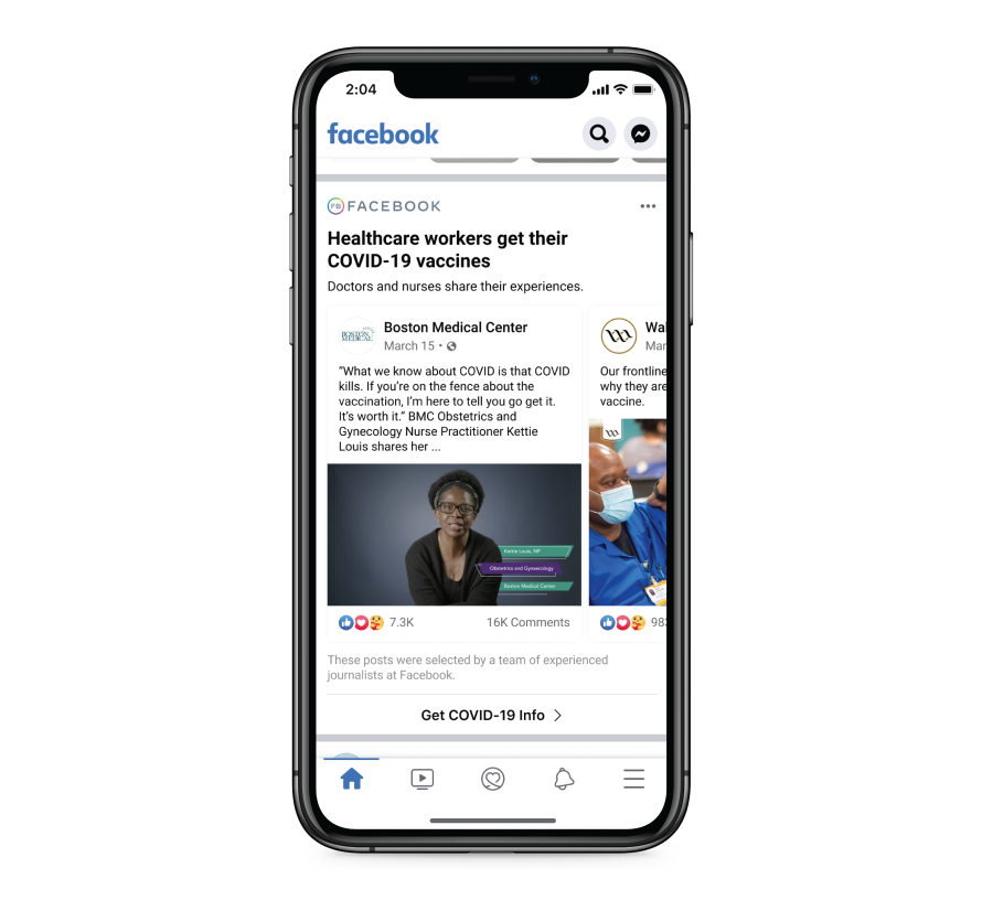 Em países onde as vacinas estão se tornando disponíveis para o público em geral, estamos focados em amplificar o conteúdo de parceiros para ajudar a alcançar as pessoas mais afetadas pelo COVID-19 e ajudar a aumentar a demanda por vacinas.