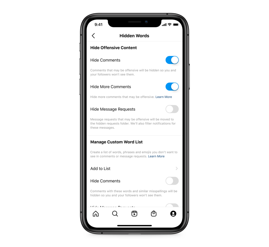 - Filtragem automática de comentários: Usamos a inteligência artificial para filtrar automaticamente os comentários de pessoas que você não segue e que podem ser ofensivos ou intimidatórios. Expandimos a lista de palavras potencialmente ofensivas, hashtags e emojis que filtramos automaticamente dos comentários e continuaremos a atualizá-la frequentemente.