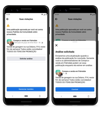 Agora, os administradores podem fazer uma apelação de violações referentes a conteúdo publicado ou aprovado por eles ou por outros administradores, bem como conteúdo de membros. Essas apelações serão analisadas pelo Facebook para garantir que a decisão certa seja tomada.