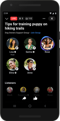 - Crie salas de áudio ao vivo nos Grupos: uma forma leve para especialistas e comunidades se inspirarem uns nos outros por meio de conversas com áudio. As salas de áudio ao vivo estarão disponíveis para Grupos em breve.