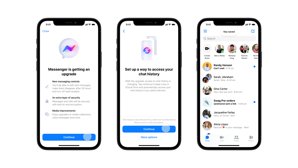 Uma das razões pelas quais as pessoas adoram o Messenger são as memórias contidas em suas conversas. Para alguns de nós, são mais de uma década de relações que podem ser revisitadas, independentemente de usarem o Messenger em seu dispositivo móvel ou pelo computador. Historicamente, conseguíamos acessar essas memórias porque os bate-papos eram armazenados em nossos servidores, mas mudamos a forma como as mensagens pessoais são armazenadas e acessadas com criptografia padrão de ponta-a-ponta.