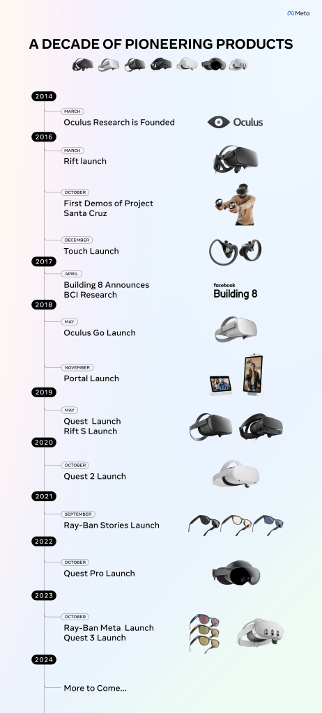 Já se passaram dez anos desde que Mark Zuckerberg anunciou a aquisição da Oculus e começou a levar adiante e com bastante seriedade a sua visão do metaverso. É uma década de investimento no Reality Labs, incluindo pesquisa futurística, desenvolvimento contínuo de produtos e muitos protótipos.
