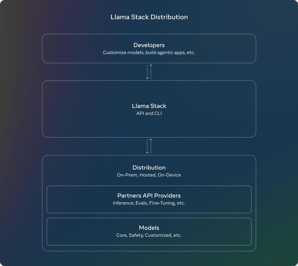 - Llama CLI (interface de linha de comando) para criar, configurar e executar distribuições Llama Stack