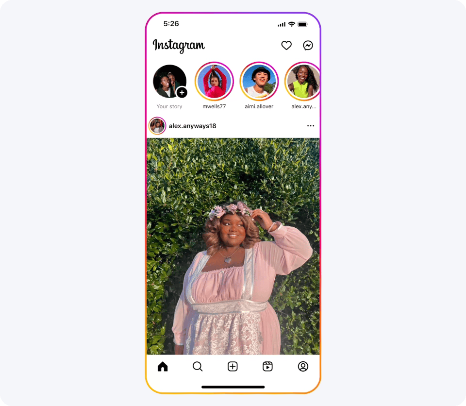 Estamos testando novos conteúdos gerados pelo Meta AI para os feeds do Facebook e Instagram dos usuários, que poderão ver imagens do Meta AI criadas especialmente para eles (com base em seus interesses ou trends atuais). Você pode tocar em uma sugestão de prompt para interagir com o conteúdo ou deslizar para imaginar um novo conteúdo em tempo real.