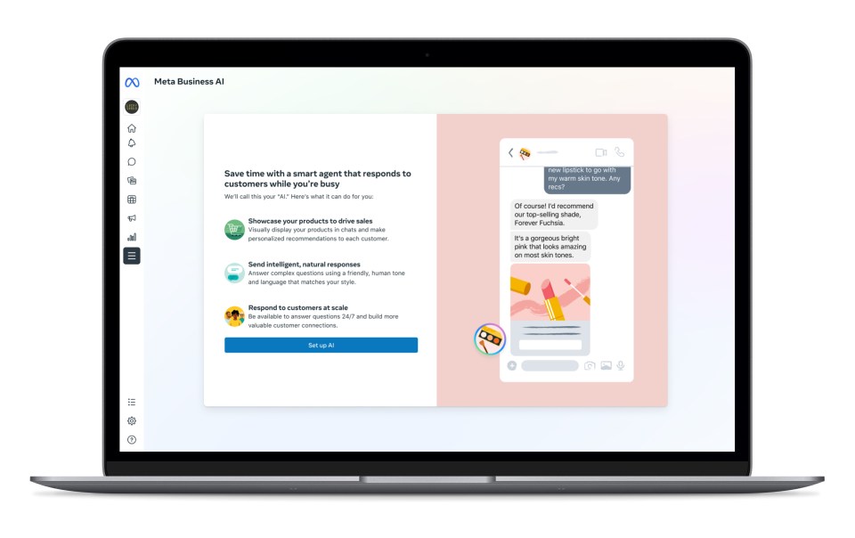 Estamos expandindo as nossas ferramentas de IA para milhares de empresas que usam anúncios de “Clique para Conversa” no WhatsApp e no Messenger em inglês, para que elas possam configurar rapidamente IAs para negócios que podem falar com seus clientes, oferecer suporte e facilitar o comércio. Desde responder a perguntas comuns de clientes até discutir produtos e finalizar uma compra, essas IAs para negócios podem ajudar as empresas a se envolverem com mais clientes e aumentar as vendas.
