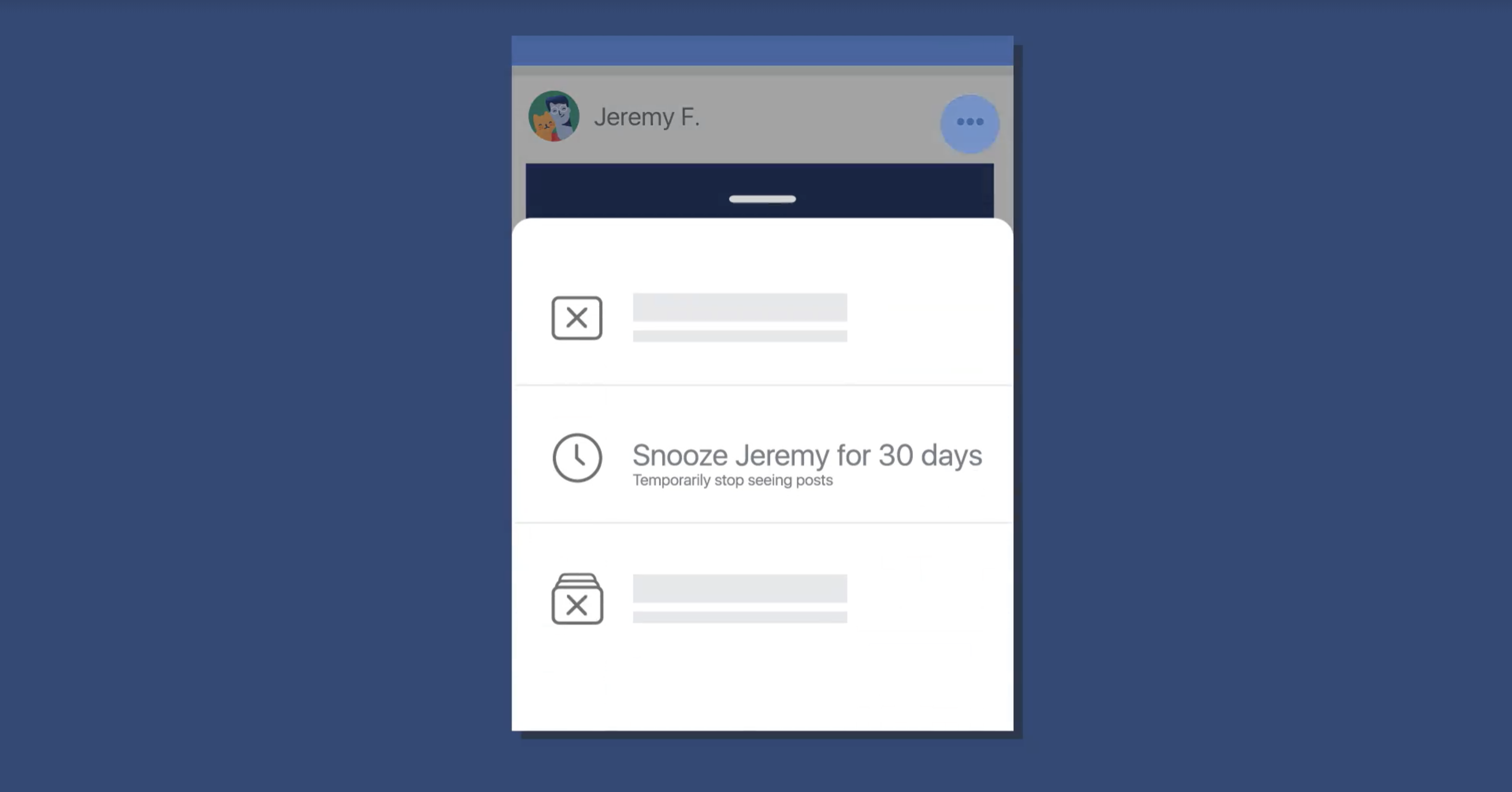 Postet dein Onkel zu viele Fotos von seiner neuen Katze? Bekommst du ständig Hunger, weil deine Freundin auf ihrer Japanreise all ihre Restaurantbesuche fotografisch festhält? Keine Sorge. Du bist nicht allein. Wir haben von vielen Menschen auf Facebook gehört, dass sie noch mehr selbst darüber bestimmen möchten, was sie im News Feed sehen. Mit der Snooze-Funktion musst du einer Seite nicht für immer entfolgen oder eine Person entfreunden – du siehst einfach für eine Weile die Beiträge der gewünschten Personen, Seiten und Gruppen nicht mehr. Die Personen, Seiten und Gruppen, bei denen du diese Funktion aktivierst, werden darüber nicht informiert. Außerdem wirst du benachrichtigt, wenn der Zeitraum von 30 Tagen in Kürze enden sollte. Die Einstellung kann natürlich jederzeit rückgängig gemacht werden.