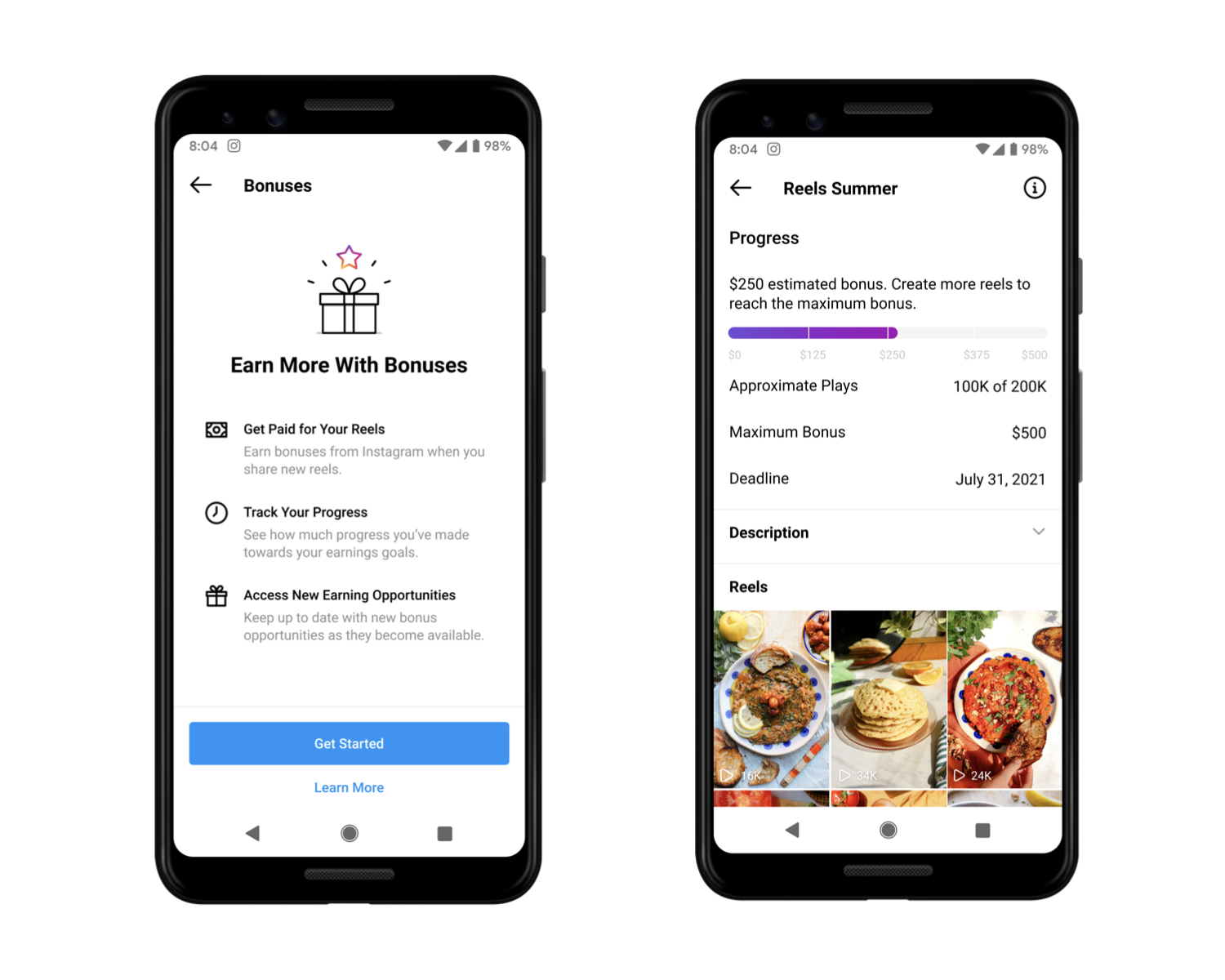 Auf Instagram gehen die ersten Boni an Creator*innen, die Reels verwenden und sich für IGTV-Werbeanzeigen anmelden: