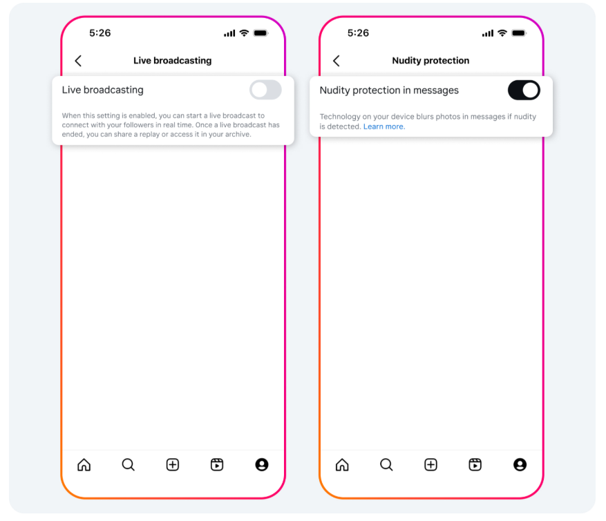 - Vamos a introducir protecciones adicionales para las Cuentas de Adolescente e Instagram, lo que implica que los menores de 16 años no podrán iniciar transmisiones en directo ni desactivar nuestras protecciones para imágenes no deseadas en sus mensajes directos sin el consentimiento parental.