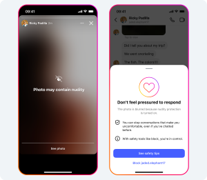 Y desde que lanzamos nuestra función de protección contra desnudos a nivel mundial, el 99 % de las personas, incluidos los adolescentes, la han mantenido activada, y en junio, más del 40 % de las imágenes borrosas recibidas en mensajes directos permanecieron borrosas, lo que redujo significativamente la exposición a desnudos no deseados.