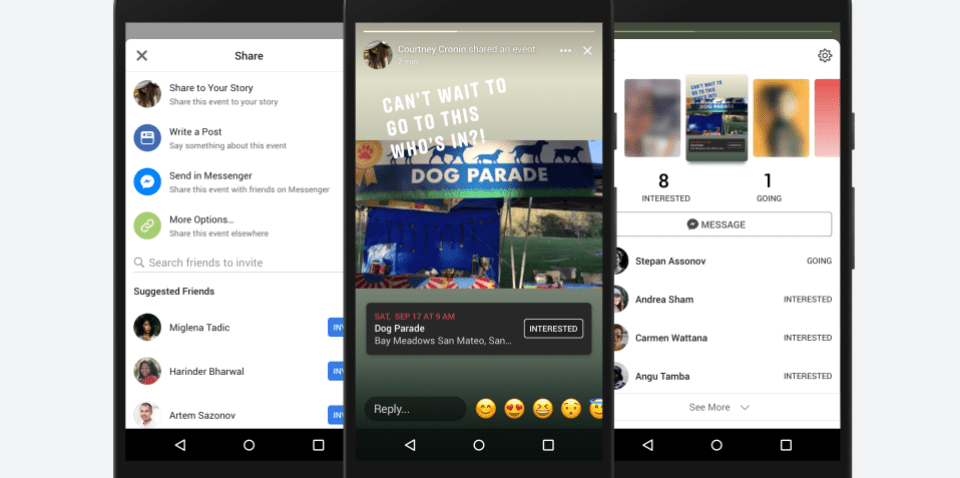- Un autocollant à mettre sur votre Story qui donne désormais les détails de l’événement, permet à vos amis de répondre « Intéressé » ou « Participe » directement à partir de la Story – renvoyant également sur la page de l’évènement avec un simple clic sur l’autocollant.