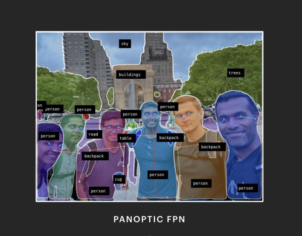 Légende : Des technologies comme le FPN Panoptic, montré ici, aident les systèmes basés sur l’intelligence artificielle à comprendre le contexte à partir des arrière-plans des photos.