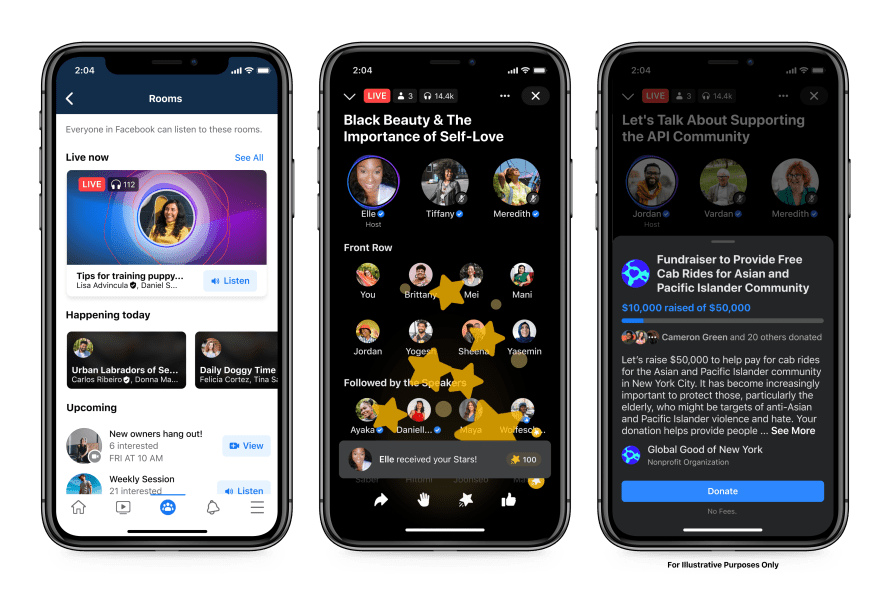 Nous allons également commencer à tester les salles audio en direct, et nous envisageons de les rendre accessibles à tout le monde sur l’application Facebook d’ici cet été. Nous sommes convaincus que l’audio est un moyen idéal pour rallier les communautés autour des sujets qui les intéressent. Dans un premier temps, nous testerons l’audio en direct dans les groupes et avons très hâte de le mettre à la disposition des 1,8 milliard de personnes qui utilisent les groupes chaque mois et des dizaines de millions de communautés actives sur Facebook. Dans le cadre de ce déploiement initial, et parce que nous savons que les communautés ne se construisent pas uniquement dans les Groupes, nous allons également proposer l’audio en direct aux personnalités publiques afin qu’elles puissent organiser des échanges avec confrères, experts et fans. Nous travaillons activement pour que les salles audio en direct soient disponibles sur Facebook et Messenger cet été, afin que vous puissiez vous retrouver facilement avec vos amis.