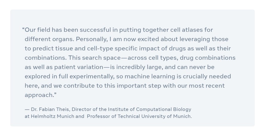 En offrant aux laboratoires pharmaceutiques des outils assistés par l’IA, nous espérons accélérer considérablement le processus d’identification des combinaisons optimales de médicaments et d’autres interventions, ce qui pourrait aboutir à l’élaboration de meilleurs traitements pour les maladies complexes comme le cancer et les nouvelles maladies comme le COVID-19.
