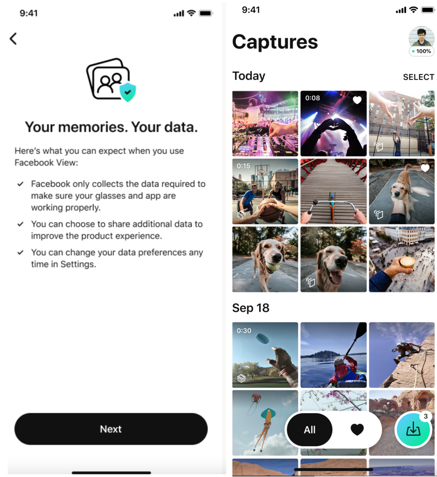 Ray-Ban Stories est associé à la nouvelle application Facebook View, pour partager simplement vos histoires et vos souvenirs avec vos amis et contacts sur les réseaux sociaux. L’application Facebook View, disponible sur iOS et Android, permet d’importer, modifier et partager facilement les contenus captés avec vos lunettes intelligentes via les applications installées sur votre téléphone : Facebook, Instagram, WhatsApp, Messenger, Twitter, TikTok, Snapchat, etc. Elle permet aussi d’enregistrer le contenu dans la bibliothèque photos de votre téléphone et de l’éditer ou de le partager depuis celui-ci. Vous pouvez enfin ajouter une touche créative unique à vos contenus grâce à la toute nouvelle et exclusive fonctionnalité de retouche intégrée à Facebook View.