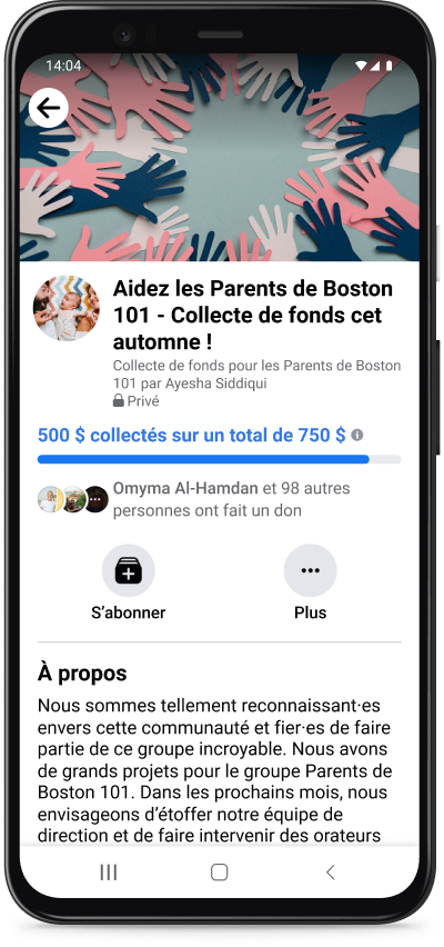 - Créer des collectes de fonds pour la communauté afin de lever des fonds pour les projets du groupe, de compenser les coûts de gestion du groupe ou de permettre aux membres d’exprimer leur reconnaissance envers les admins et les modérateurs.