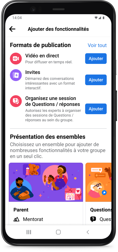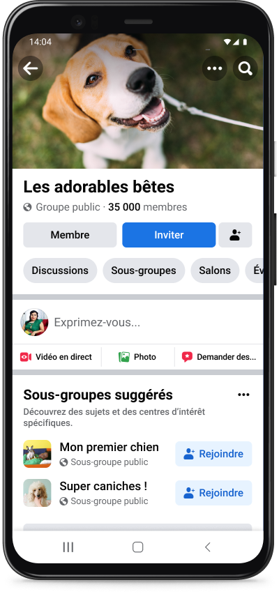 Avec un seul fil principal destiné aux discussions dans un groupe, il peut être difficile pour les membres de trouver des contenus susceptibles de susciter des interactions. Nous testons actuellement une fonctionnalité permettant aux admins de créer des sous-groupes dédiés à des sujets, des régions ou des occasions spécifiques et qui peuvent être gérés de manière centralisée, afin que les membres puissent approfondir plus facilement des thèmes qui leur tiennent à cœur.