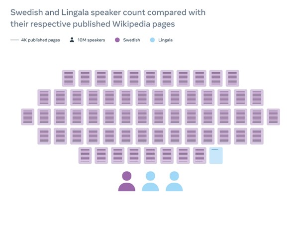 Nous avons travaillé en partenariat avec la fondation Wikimédia, une organisation à but non lucratif qui héberge Wikipédia et d’autres sites d’accès gratuit au savoir, pour aider à améliorer les systèmes de traduction de Wikipédia. Wikipédia possède des versions en plus de 300 langues, mais la plupart des versions sont loin d’approcher les plus de 6 millions d’articles du Wikipédia anglais. Cet écart est particulièrement marqué pour les langues principalement parlées en dehors de l’Europe et de l’Amérique du Nord. Par exemple, il n’existe qu’environ 3 260 articles de Wikipédia en lingala, une langue qui compte 45 millions de locuteurs dans la République démocratique du Congo, la République du Congo, la République Centrafrique et le Soudan du Sud. À titre de comparaison, il existe plus de 2,5 millions d’articles en suédois, alors que cette langue est parlée par 10 millions de locuteurs en Suède et en Finlande.