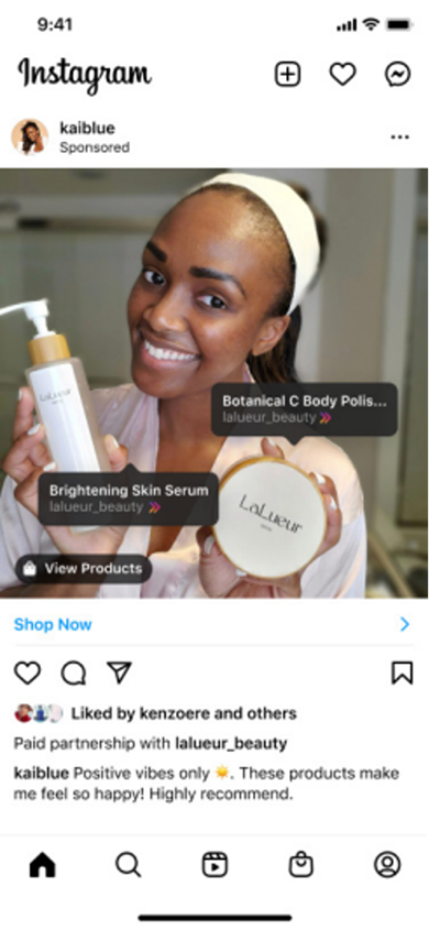 Exemple de contenu sur Instagram incluant l’étiquette “Partenariat rémunéré”