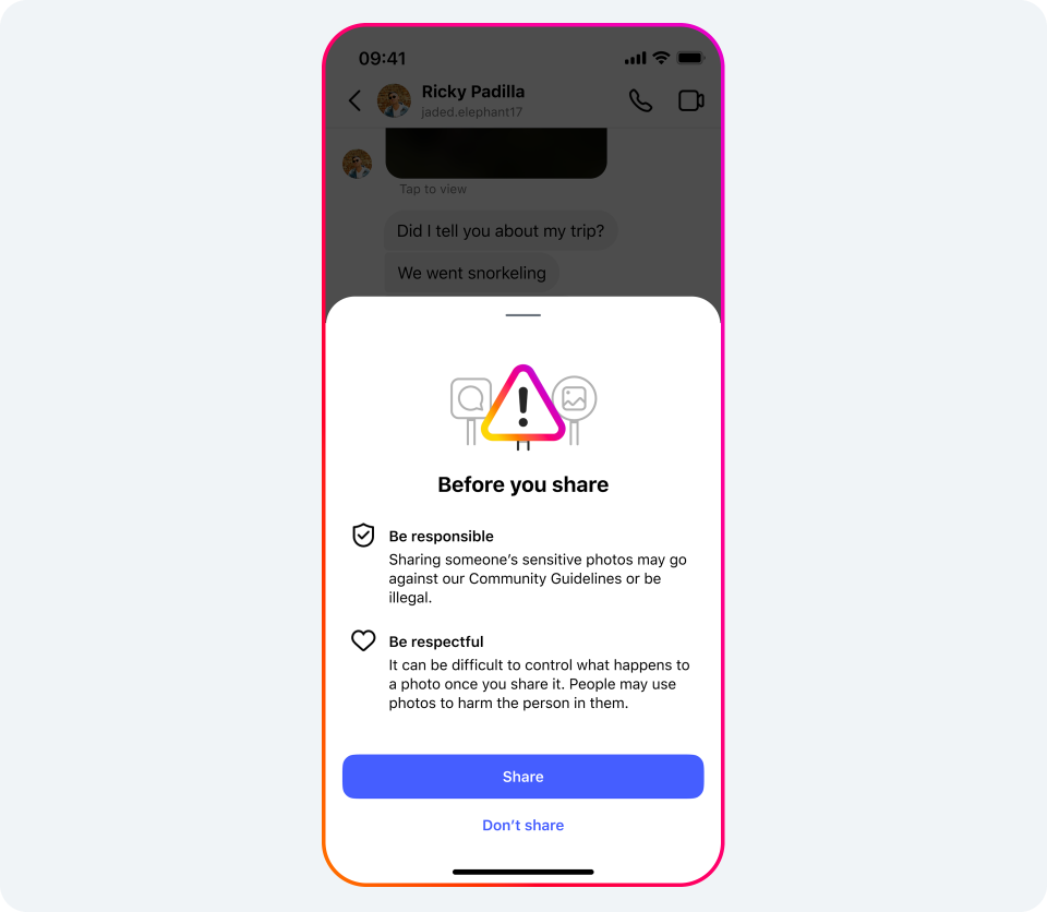 La protection contre la nudité, activée par défaut pour les adolescents, encourage également à ne pas transmettre de telles images : en mai, les utilisateurs ont choisi de ne pas envoyer ces contenus dans environ 45 % des cas après avoir vu un avertissement.