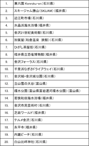 ■北陸3県(石川、富山、福井)の人気チェックインスポット トップ20(交通機関を除く)