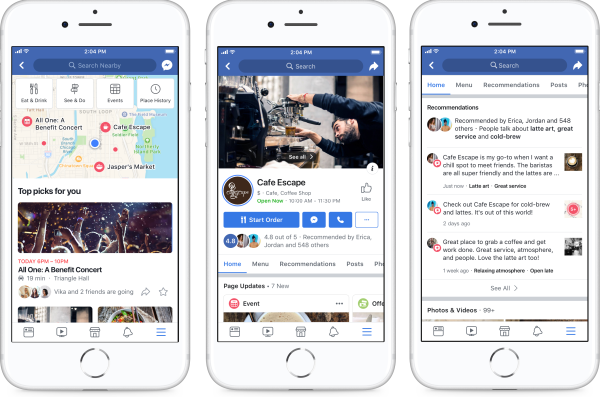 Facebookを利用している8000万以上のビジネスのうちの多くは、中小ビジネスやローカルビジネスが占めています。これらのビジネスは、Facebookを活用してオンライン上での存在感を維持し、また、最新情報の発表や顧客とのコミュニケーション、取引の拡大を図っています。また、Facebook利用者の3人に2人が、少なくとも週に1回、ローカルビジネスのページや開催予定のイベントのページにアクセスしています。Facebookでは人々とビジネスのつながりをより有意義なものにし、そして、より多くの情報を提供することで、ビジネスが有意義な結果を導く支援をしたいと考えています。そこで、Facebookは、おすすめのビジネスを推奨する新しい方法の提供、顧客が利用可能なアクションアイテムの拡充、採用をサポートする求人情報ツールの拡大など、ビジネスページのデザインに関するアップデートを行いました。
