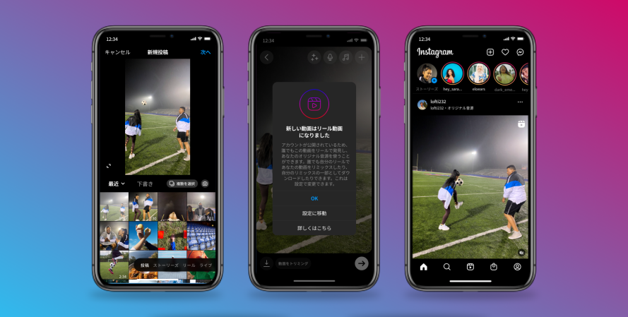 Instagramは11月17日(米国時間)、フィード投稿として15分以下の動画をシェアすると、リール動画としてシェアされるテストを日本とインドネシアの2ヶ国で始めることを発表しました。このテストによって、15分以下の動画でもリールの編集ツールを一部使えるようになるほか、リール専用タブに動画が表示され、より多くの利用者に再生される可能性があります。