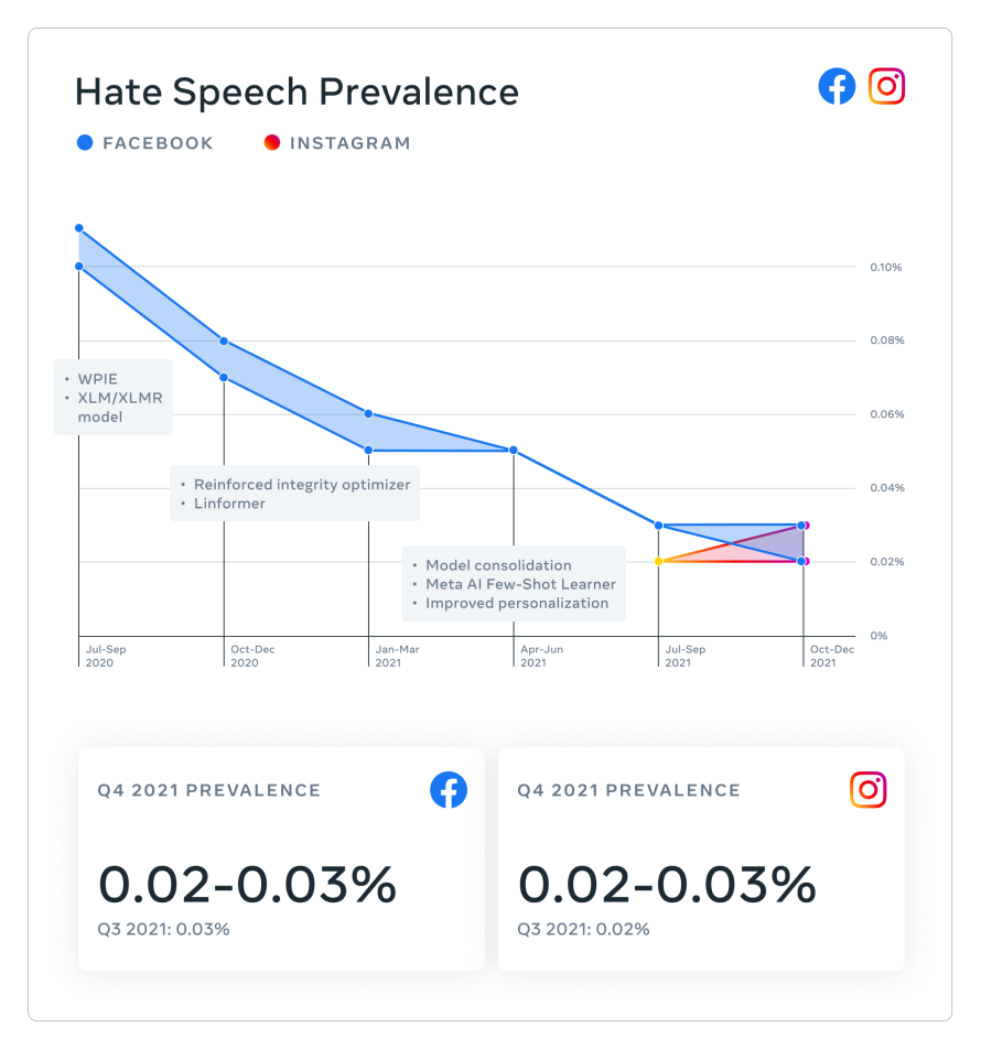 Metaの堅調な進歩は、私たちのポリシーやテクノロジー、世界規模のコンテンツモデレーションの運用、安全性と正当性に焦点を当てた製品設計など、総合的な取り組みによるものです。