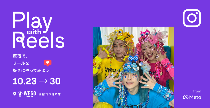 Instagramは、“リールをもっと自由に、クリエイティブに楽しむ” ことをテーマとしたキャンペーン「好きにやってみよう。」の一環として、10月23日(日)から30日(日)まで、WEGO 原宿竹下通り店にてクリエイター向けの招待制イベントや、誰でも利用できるリール撮影ブースの設置などを行います。