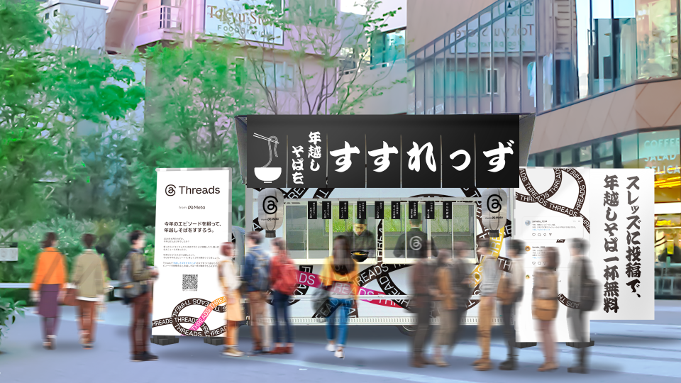 Metaは12月27日(金)から29日(日)までの期間限定で、今年のエピソードをThreadsに投稿すると年越しそばを無料で一杯提供するイベント「年越しそばをすすれっず by Threads」を渋谷キャスト ガーデン(東京都渋谷区渋谷1-23-21 渋谷キャストGF)で開催します。Threads(スレッズ)と、そばを “すする” の響きが似ていることから、自分や友達、他の人たちが投稿したコンテンツを通じて今年を振り返りながら、大晦日より一足先に年越しそばを楽しもうというイベントです。