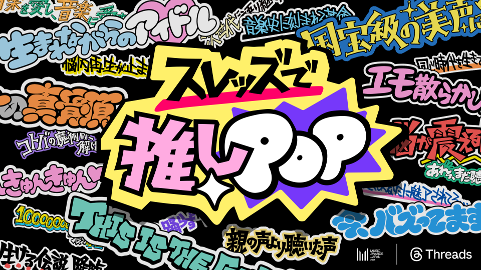 Metaは5月8日(木)から、国内最大規模の国際音楽賞「MUSIC AWARDS JAPAN」とのコラボレーション企画として、Threadsを活用したキャンペーン「スレッズで推しPOP」を開始します。MUSIC AWARDS JAPAN 2025にノミネートされた作品への思いをThreadsに投稿することで、アーティストを応援しながらファンがお互いにつながり、同アワードを一緒に楽しもうという企画です。