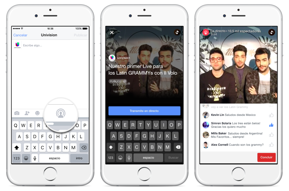 Para compartir un video en directo, entra a tu página con tu iPhone y haz clic en Publicar. Selecciona Live Video y escribe una breve descripción antes de comenzar a transmitir. Durante la transmisión verás la cantidad de espectadores, los nombres de otras personas con páginas verificadas que están viendo tu video, y una cadena de comentarios en tiempo real. Cuando termines, tu transmisión será publicada en tu biografía, pero puedes retirarla en cualquier momento como cualquier otro video.