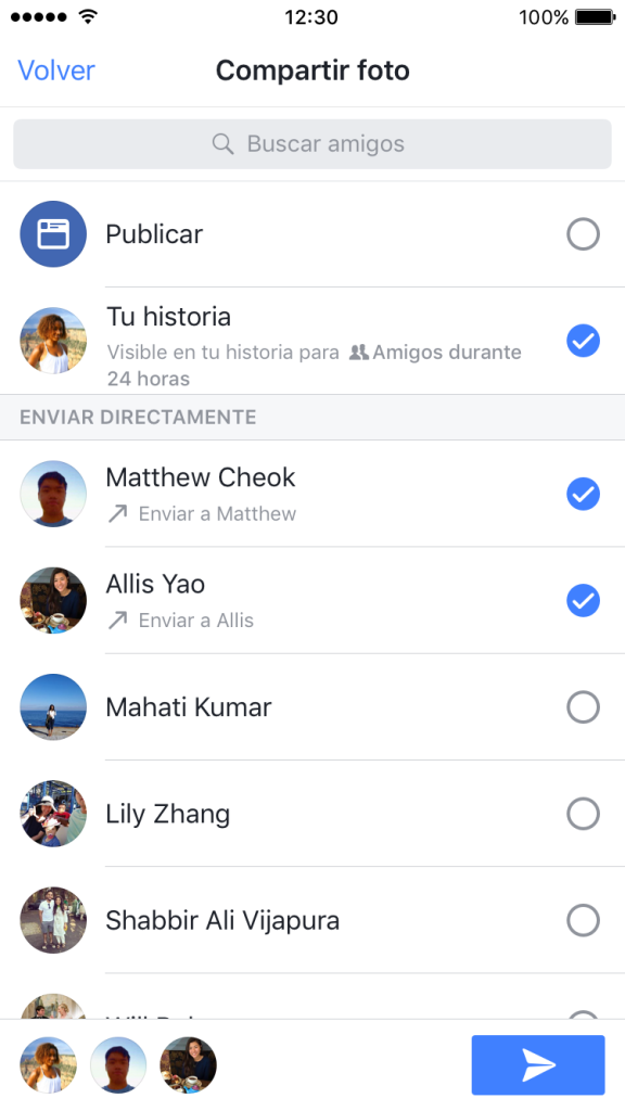 Además de compartir tu Historia, sabemos que quizás quieras compartir tus fotos y videos con amigos específicos. También hemos agregado Direct, una opción diseñada para compartir fotos y videos individuales con amigos específicos por un tiempo limitado.