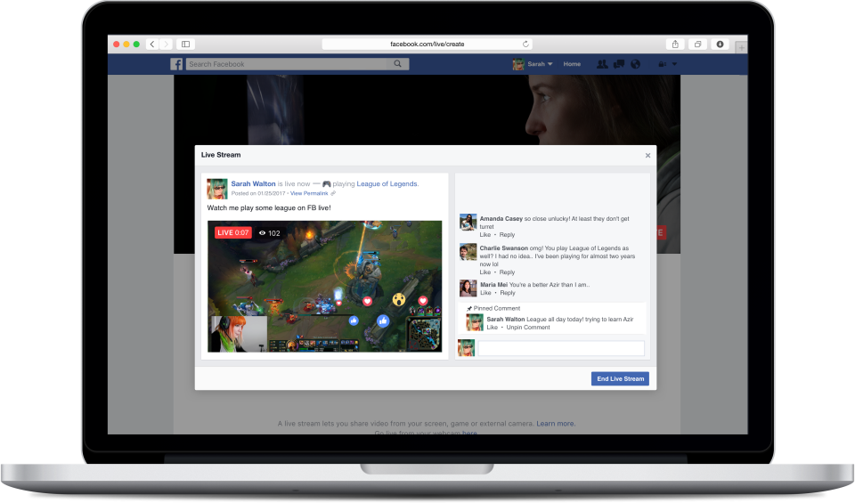 Con esta actualización, es más sencillo compartir la pantalla, insertar gráficos, cambiar de cámara sin cortes, o utilizar equipos profesionales en videos en Facebook. La gente también tiene la opción de transmitir a los Grupos de Facebook a los que pertenecen, Eventos de Facebook en los que participan, o las páginas de Facebook que administran.