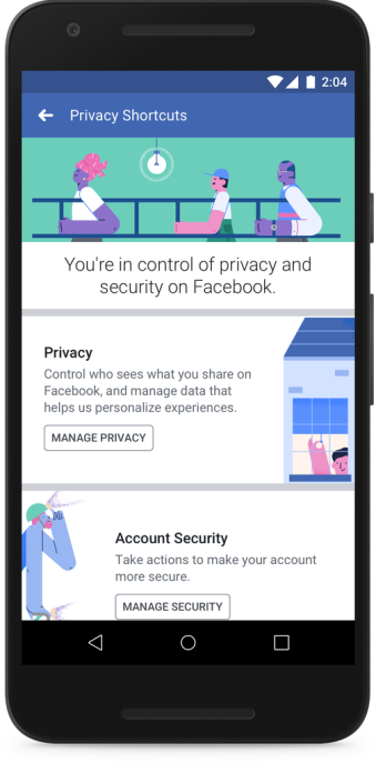 Controles más sencillos de hallar y fáciles de usar. Hemos rediseñado por completo nuestro menú de configuración en dispositivos móviles para facilitar el acceso a herramientas y controles. En lugar de tener las opciones de configuración en casi 20 pantallas diferentes, ahora son accesibles en un solo lugar. También hemos simplificado las configuraciones para que quede claro qué información puede y no puede ser compartida con apps.