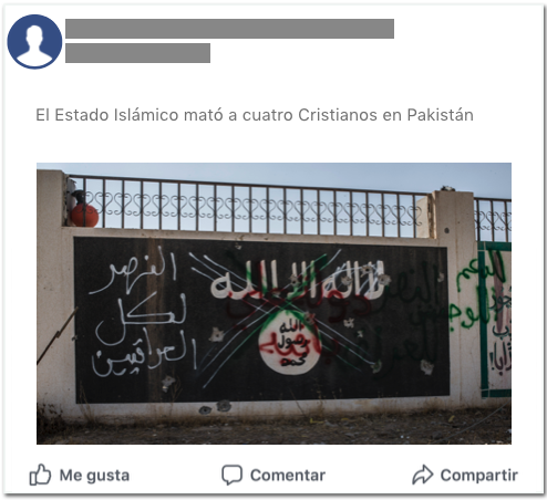Si una publicación carece de condena clara o valor de noticias, le damos de baja. Eso significa que si una persona o una página se oponen a las acciones de un grupo terrorista o de odio pero comparte una foto de ese grupo sin contexto, nuestros revisores la eliminarán. Hacemos esto porque es difícil para nosotros determinar la intención de la persona, y porque esos mensajes pueden ser fácilmente compartidos por otros para elogiar a ese grupo.