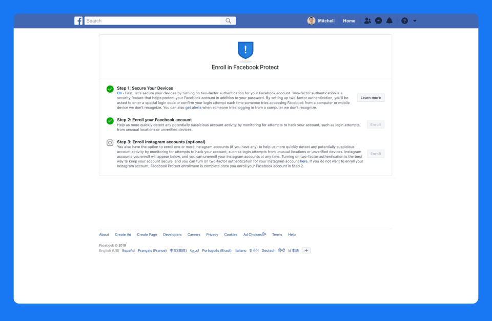 A partir de ahora, los administradores de páginas podrán suscribir las cuentas de Facebook e Instagram de sus organizaciones a Facebook Protect e invitar también a los miembros de sus organizaciones a participar en el programa. Par hacerlo, deberán activar la autenticación de dos factores y sus cuentas serán monitoreadas para detectar ataques como, por ejemplo, intentos de acceso desde lugares inusuales o desde dispositivos no verificados. Si descubrimos un ataque contra una cuenta, podemos revisar y proteger otras cuentas asociadas con la misma organización que forman parte de nuestro programa. Puede leer más sobre Facebook Protect y sumarse al programa aquí.