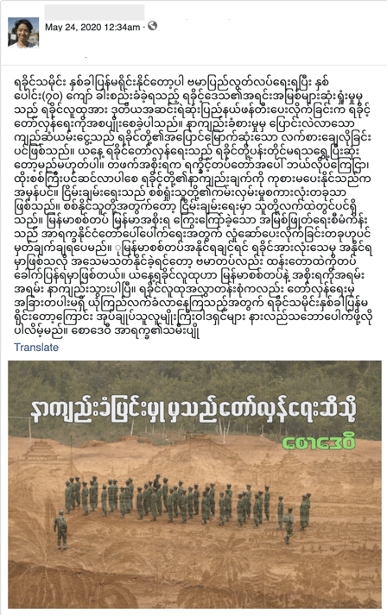 Las personas detrás de esta actividad usaban cuentas falsas para crear personas ficticias, publicar contenido y administrar Páginas y Grupos, algunas de los cuales ya habían sido detectadas y deshabilitadas por nuestros sistemas automatizados por violar nuestras políticas de spam, terrorismo y discurso de odio. Algunas de estas Páginas suplantaban otras, como una página oficial de Tatmadaw. Esta red publicaba principalmente en birmano sobre eventos actuales en el estado de Rakáin en Myanmar, incluyendo publicaciones en apoyo al ejército Arakan y críticas a Tatmadaw, las fuerzas armadas de Myanmar. Esta actividad no parece estar directamente enfocada en las elecciones de noviembre en Myanmar.