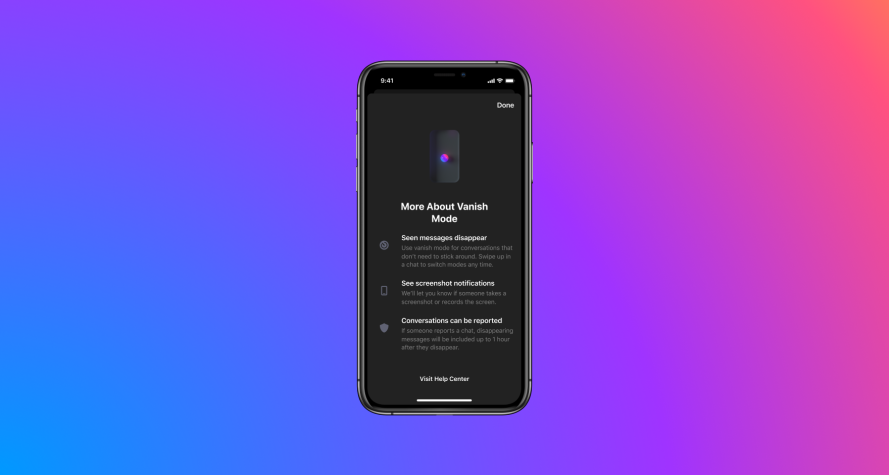 Implementaremos el Modo Efímero poco a poco en Messenger e Instagram. Actualmente está disponible en Messenger en Estados Unidos y otros países. En las semanas y meses por venir estará disponible en más países y a través de Instagram, al actualizar la aplicación a la nueva experiencia de Messenger.