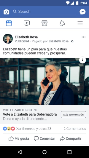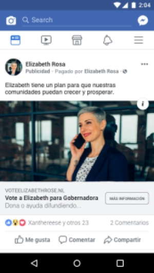 En agosto de 2020, lanzamos en el Ecuador la herramienta de transparencia para avisos políticos y electorales, que permite a las personas saber quién está detrás de los anuncios políticos que ven en Facebook e Instagram. Desde entonces, la publicidad sobre política o elecciones en Facebook e Instagram deben estar identificadas con la etiqueta «Pagado por» y todos los anunciantes deben pasar por un proceso de autorización para confirmar su identidad y que su residencia en el Ecuador.