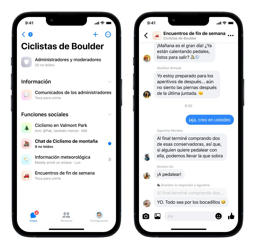 A principios de este año, anunciamos que los administradores pueden empezar a crear canales como una forma de conectar con sus grupos en espacios más pequeños y casuales. Por ejemplo, los chats de la comunidad, que permiten a las personas conectarse en tiempo real en torno a los temas que les interesan mediante mensajes de texto, audio y videos, ya están disponibles en más de 140 países en todo el mundo. Black Girls Culinary, un grupo de Facebook en el que las personas comparten sus últimas recetas, utiliza los chats de la comunidad para crear canales sobre diferentes temas, como por ejemplo, «Lunes libres de carne», y canales de audio de la comunidad para compartir consejos de cocina en tiempo real. También, pueden agregar fácilmente un chat de eventos a los eventos del grupo, lo que permite a las personas hablar acerca de los eventos antes, durante y después de que se celebren. Además, estamos probando la posibilidad de que los administradores y moderadores de los grupos creen chats de solo lectura para enviar comunicaciones unidireccionales a todos sus miembros sin tener que ocuparse activamente de mantener los mensajes en el chat o responderlos, de modo que el grupo pueda estar al tanto de la información importante. Los administradores y moderadores también pueden utilizar un chat exclusivo para administradores para colaborar en tiempo real.